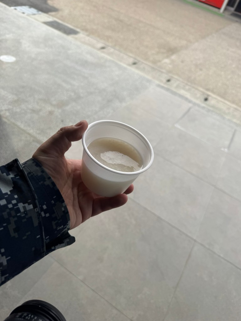 未明、0400に起床して、始発のエアポートバスに乗るため、最寄りのバス停まで撮影機材を持って基地を徒歩で出発。空は明るく、たぶん大丈夫でしょ、という感じで10キロ近い機材を背負って歩く。バッテリとかレンズとか大事な装備は手許に置かないとね、と。