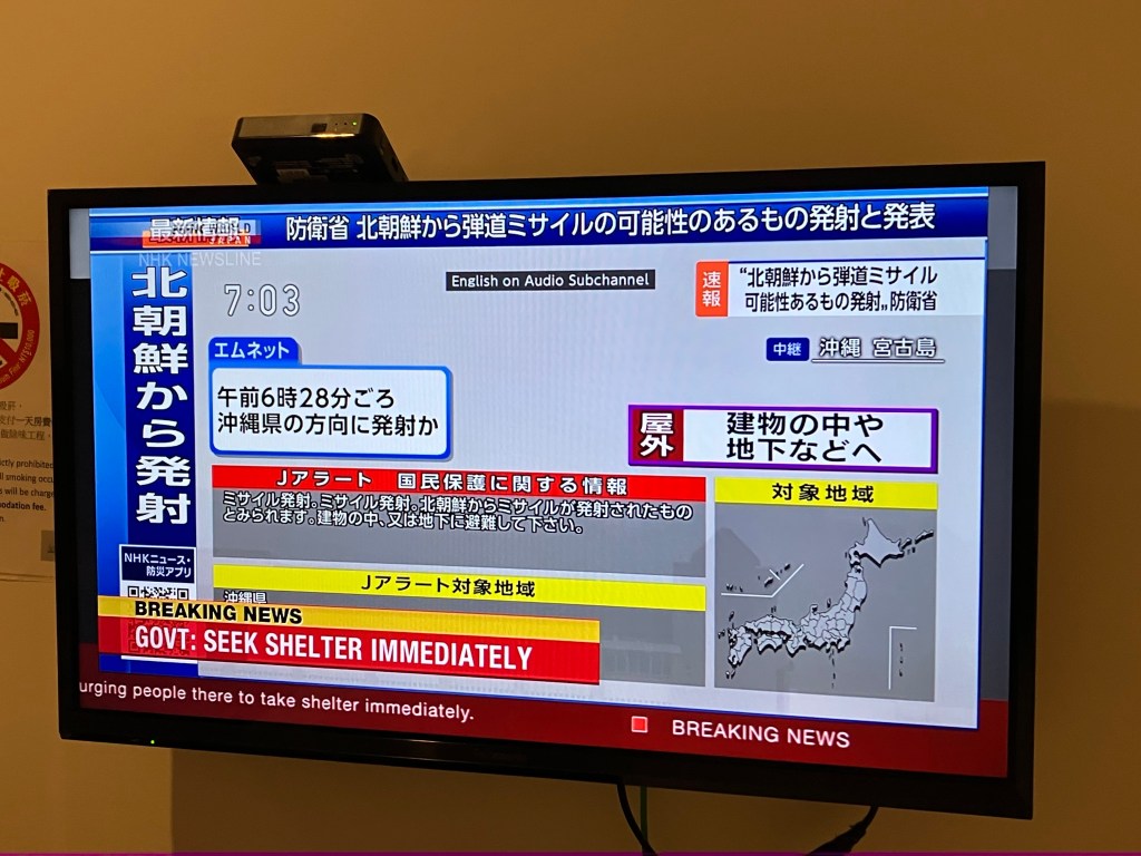 まあ、それもそうなのだが、ちょうど渡航している最中に起きた、「北朝鮮ミサイル」騒動。ちょうど到着した日の朝に、Yahoo!防災アプリがけたたましく鳴り響く。