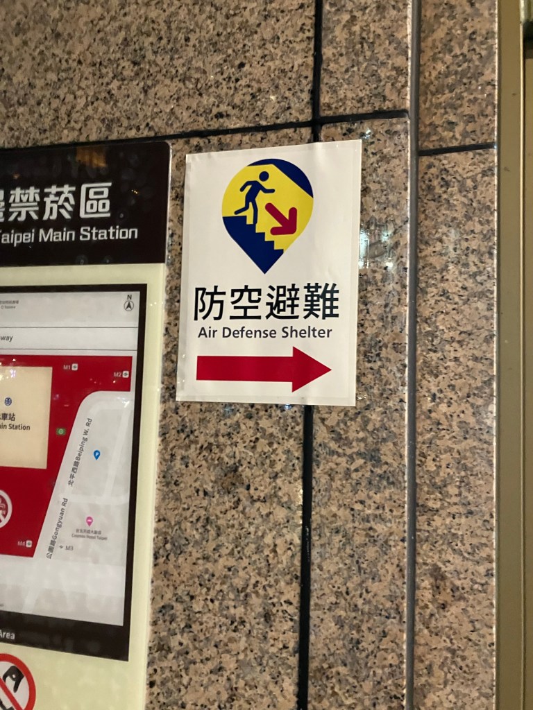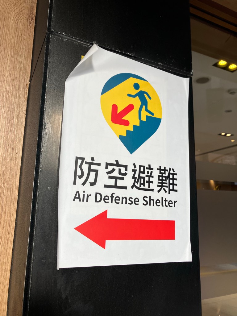 戯言はさておき、台北市街を歩いていると、以前には見かけたことのない張り紙を見かける。確かに近くにならず者国家、中共の影響か。奴らが領空侵犯して万が一の武力行使など、おそらくはブラフなのかもしれないが、そうでもない可能性を考慮してか、こういう張り紙がなされていた。