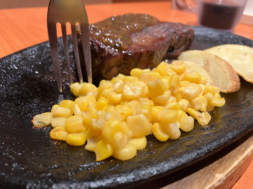 メニューを見ると、ピザが豊富・・でもないか、あとステーキもすごいのがあった、ので、それをオーダー。あとはお約束のワインデキャンタ、現地では「壺」という単位らしいw。まあ。ね。グラスとデキャンタ(250ml)とフルボトル(750ml)があって、マグナムはないようだ。流石に旅先で1本開けるのもどうかと思いつつ、デキャンタを頼む。