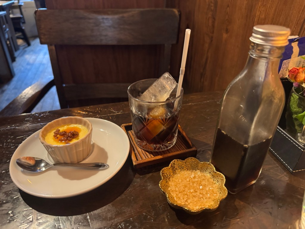 これに水出しコーヒーとデザートのプリンがきて、総額1480円!!これは今時にしては格安だわ。納得のプライスを払い、カフェを離脱。