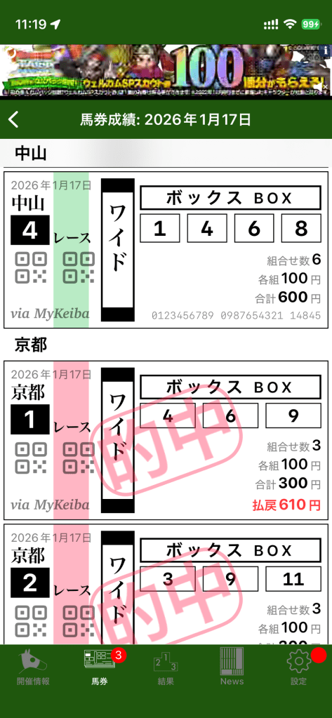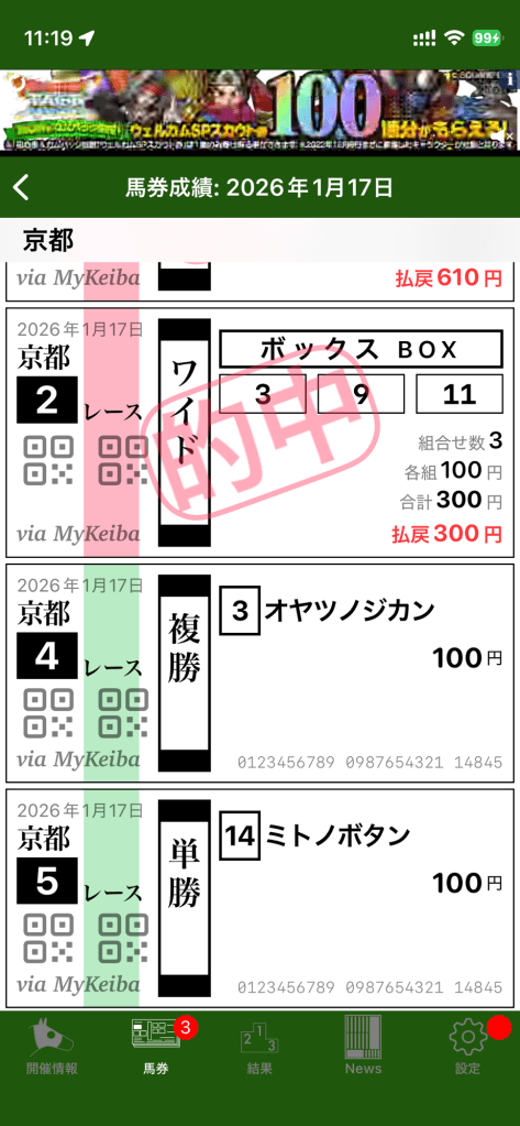 そういえば、今日の競馬投票はこんな感じ。