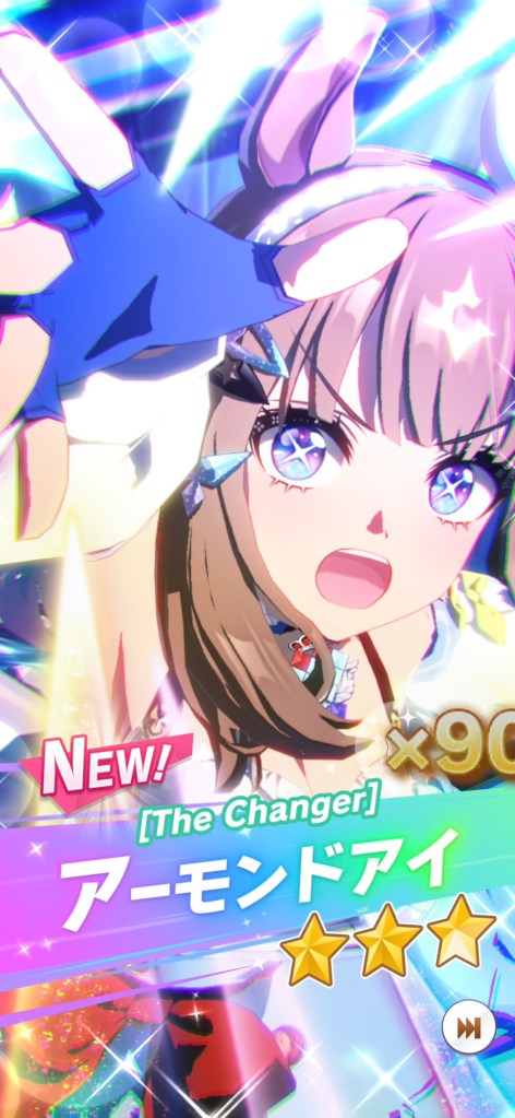 あ、あと、完璧で究極なアイドルなアーモンドアイも実装で、ちゃんとトレーナー配下に配置、それにしても、Androidでの引き運が酷いのか、まあ、出ない出ない。結局ために溜めまくった無料ニンジン石を三万ほど溶かして200連で引いたところ、今まで天井で入手なんてした事ないのに。一番強運のトレーナーは30連で来たけど。あと、さらに別のアカウントでは190で、もう天井ちかし、とかいうときに引いて、結局すぐに星4に上げられるくらいのところに、まあ、来るんならいいよね。